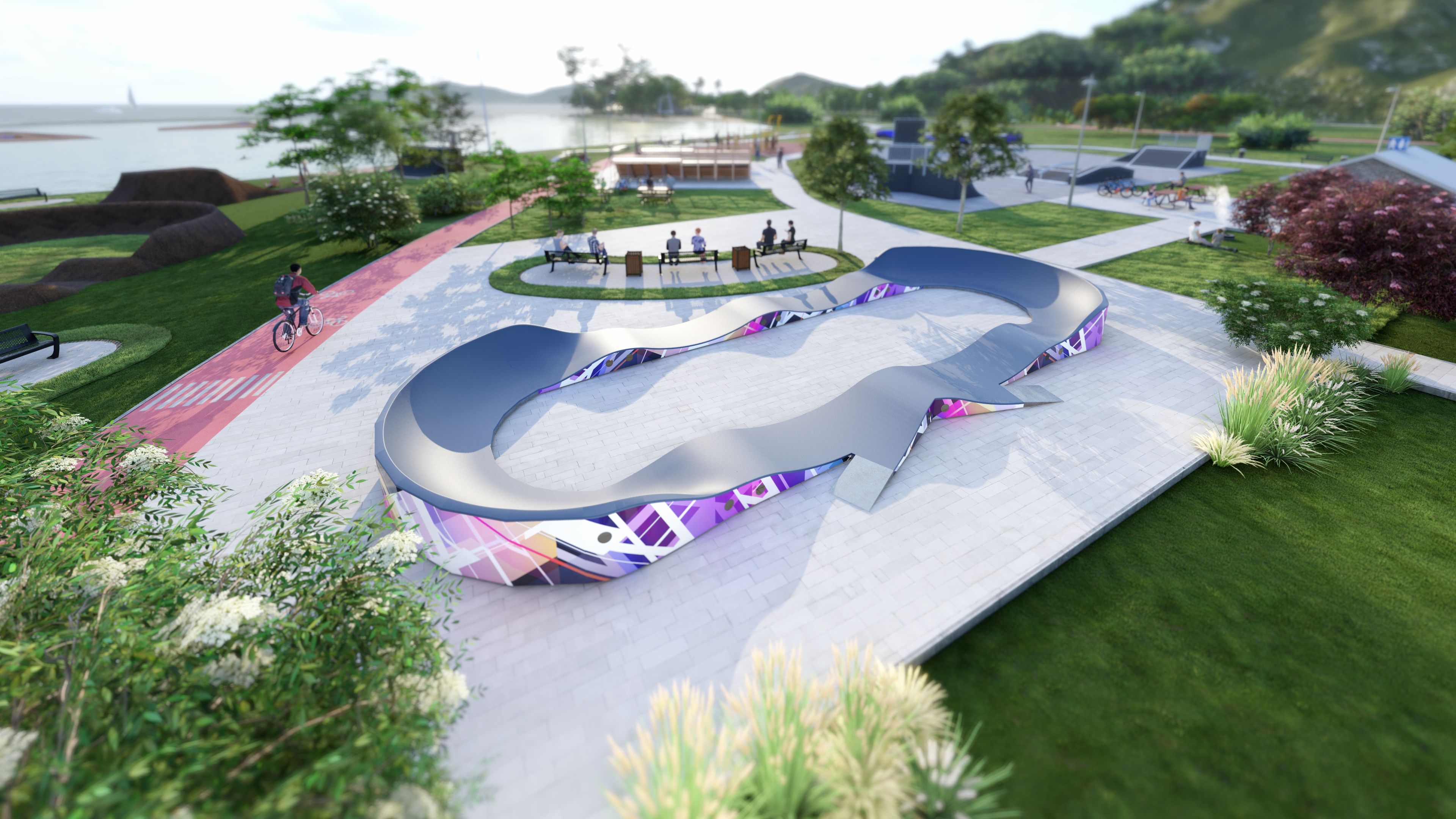 La pumptrack de 40 m de long est une version spéciale de la piste créée en collaboration avec le graphiste Nawer, dont le style distinctif confère à l'installation un caractère unique et artistique. Le design associe la fonctionnalité de la piste de pumptrack à une identité visuelle distinctive, de sorte que la piste devient non seulement un espace pour rider, mais aussi un élément distinctif de l'endroit.
