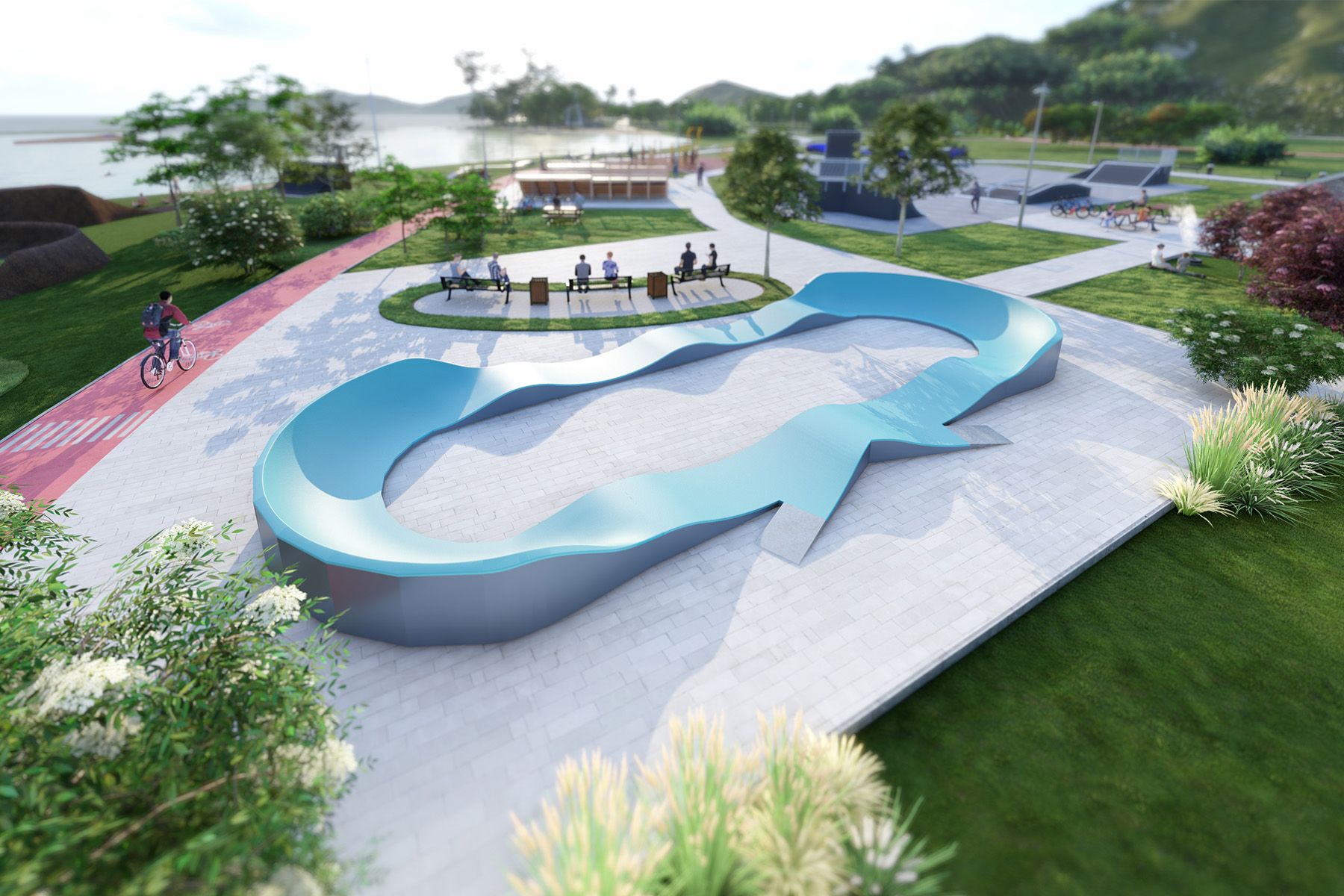 La pumptrack DESERT TF001 de 40 m de long est une piste cyclable modulaire conçue pour les vélos, les skateboards, les patins à roues alignées et les trottinettes. Le tracé de la piste est basé sur une séquence rythmée de bosses et de virages qui permettent de maintenir la vitesse en faisant travailler le corps de manière adéquate, sans avoir à pédaler ou à pousser. Grâce à sa géométrie claire, la piste est intuitive et convient aussi bien aux débutants qu'aux utilisateurs plus avancés.