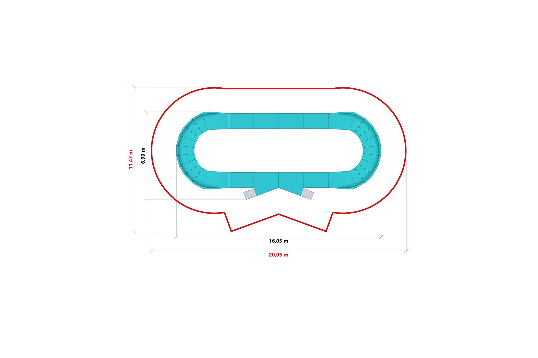 La conception modulaire permet une installation rapide et une reconfiguration future possible. Grâce à un système de pieds réglables, la piste peut également être installée sur un sol irrégulier, ce qui permet d'adapter l'installation à différents espaces de loisirs.