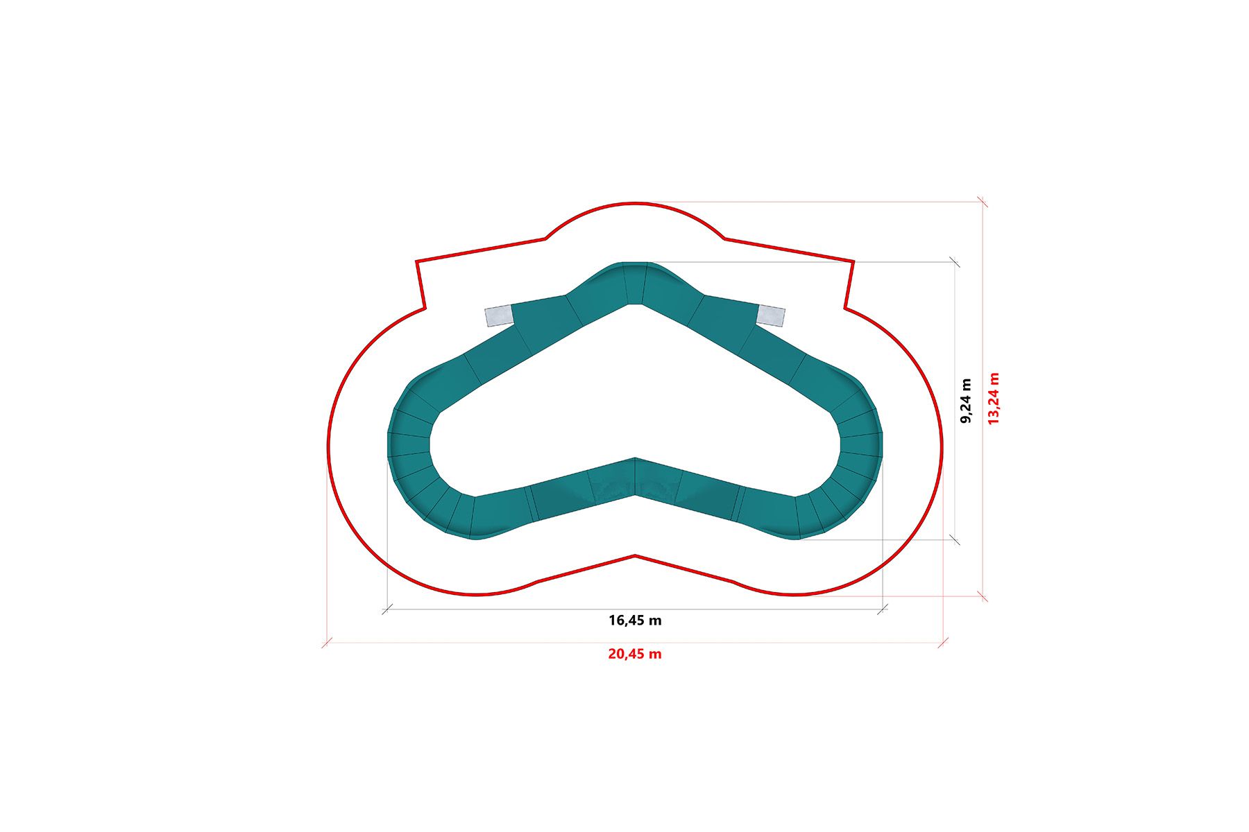 La piste est fabriquée à l'aide de la technologie acier-composite, qui associe une structure en acier robuste à une surface composite durable dotée de propriétés antidérapantes. Cette solution garantit une grande résistance aux conditions météorologiques, un besoin limité d'entretien et une longue durée de vie de l'installation.