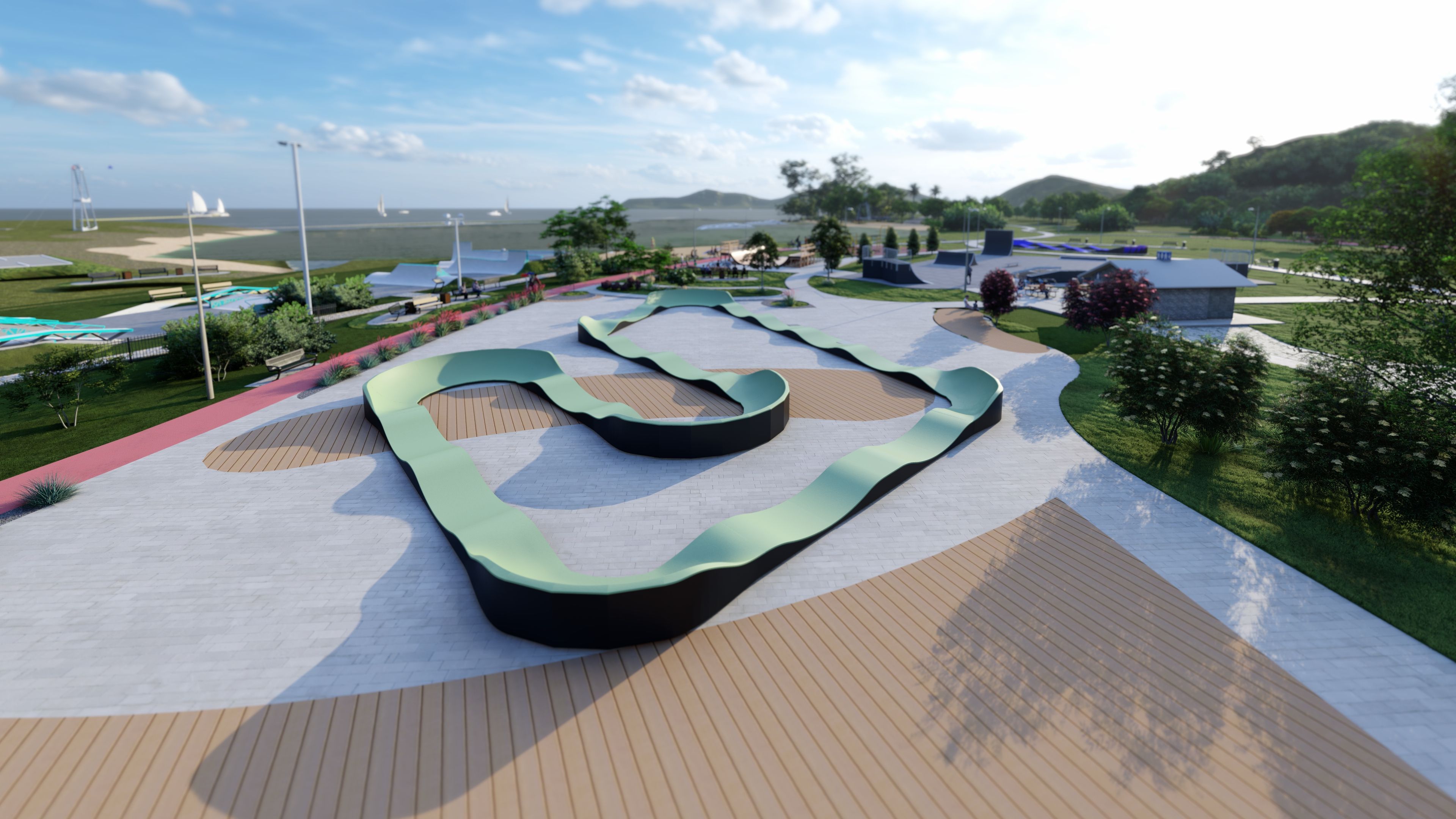 Le Pumptrack GLADE PF13E est une piste avancée avec une longueur de surface de roulement de 77,22 m, idéale pour les cyclistes à la recherche de défis et de variété dans leur conduite. Elle couvre une surface de 25,29 m x 17,22 m, offrant une piste large et variée qui conviendra aussi bien aux débutants qu'aux utilisateurs expérimentés. Grâce à sa construction robuste et à son design bien pensé, le Pumptrack GLADE PF13E est parfait pour les parcs, les zones récréatives et autres espaces publics, offrant une expérience intense et un loisir actif à tous les amateurs de cyclisme.