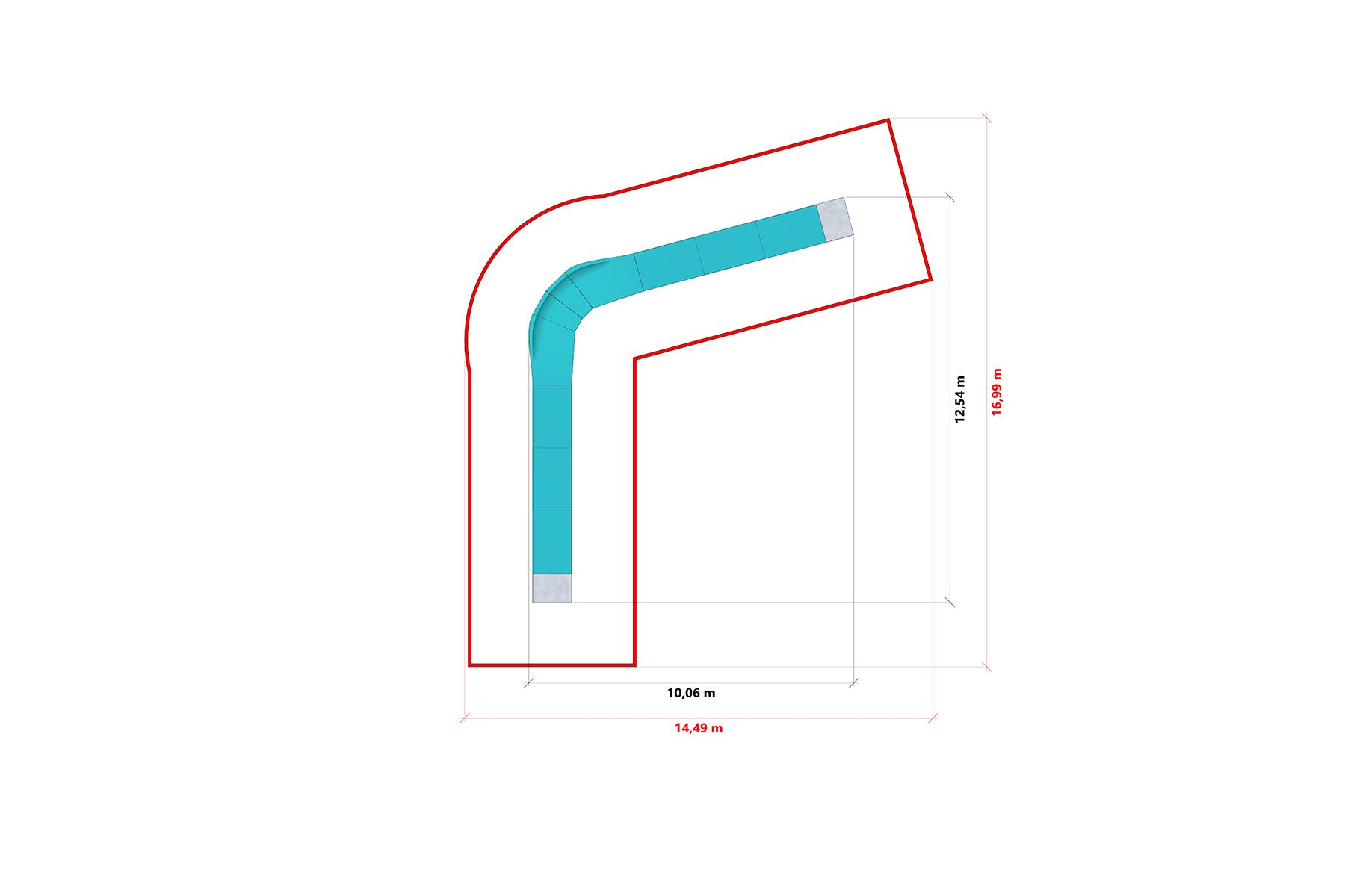 Le Line Series Pumptrack LF002 de 18,7 M est une piste compacte conçue pour une conduite dynamique et fluide sur des vélos, des skateboards, des rollers et des trottinettes. Le tracé de la piste est basé sur une séquence de vagues et de courbes douces qui permettent de maintenir la vitesse grâce à un travail corporel approprié, sans avoir à pédaler. Grâce à sa ligne de déplacement claire, la piste est idéale pour les premiers essais de conduite et pour l'apprentissage des techniques de base.