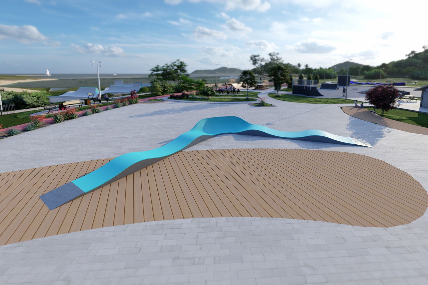 La conception modulaire de la piste permet une installation rapide et une reconfiguration future possible. Grâce à ses pieds de nivellement réglables, le pumptrack peut également être installé sur des terrains accidentés, et sa nature mobile lui permet d'être utilisé à la fois comme infrastructure récréative permanente et comme installation temporaire lors d'événements ou de zones sportives saisonnières.