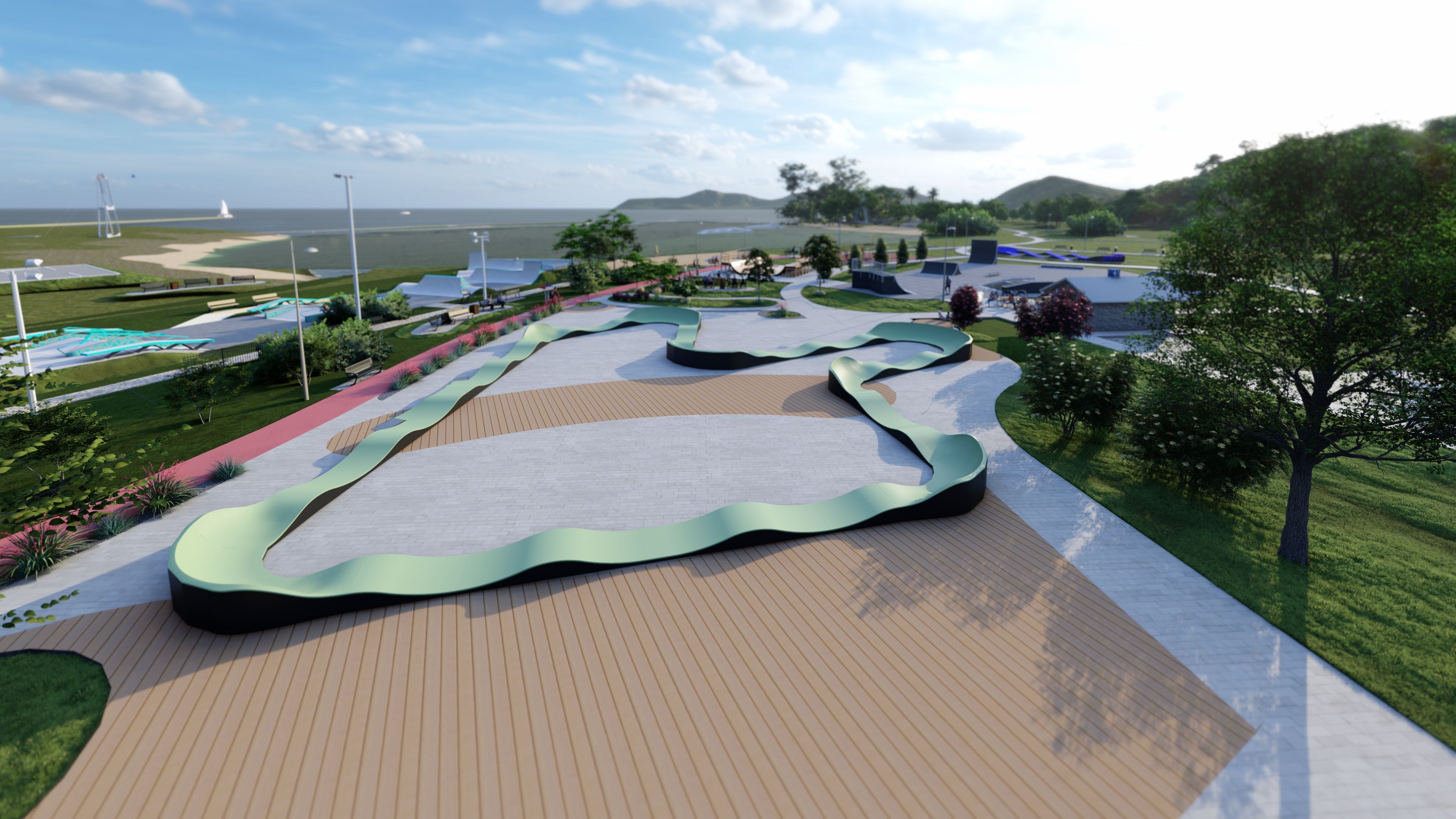 Le MESA PF16E Pumptrack est une piste avancée avec une surface de roulement de 103m de long, idéale pour les cyclistes qui recherchent des défis et de la variété dans leur conduite. Elle couvre une surface de 32,86 m x 31,00 m, offrant une piste large et variée qui conviendra aussi bien aux débutants qu'aux utilisateurs expérimentés. Grâce à sa construction robuste et à son design réfléchi, la Pumptrack PF16E de MESA est idéale pour les parcs, les zones de loisirs et autres espaces publics, offrant une expérience intense et une récréation active à tous les amateurs de cyclisme.