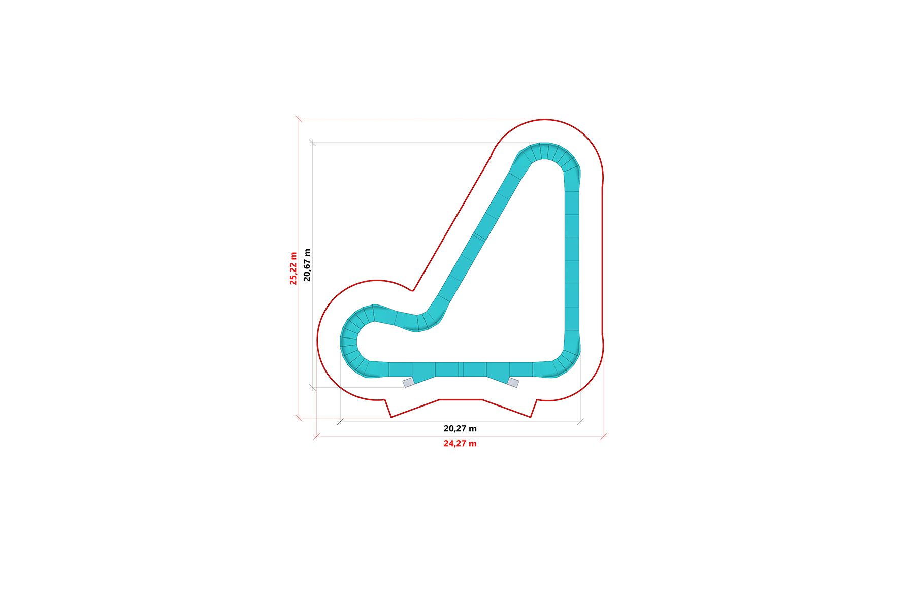 La conception modulaire permet une installation rapide et une reconfiguration future possible. Grâce à un système de pieds réglables, la piste peut également être installée sur un sol irrégulier, ce qui permet d'adapter l'installation à différents espaces de loisirs.