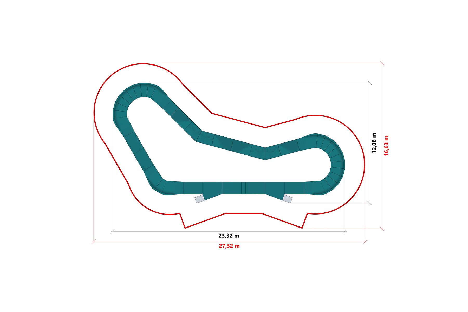 LaPumptrack TF023 de SEINE, d' une longueur de 60,1 mètres, est une piste modulaire conçue pour les vélos, les skateboards, les patins à roues alignées et les trottinettes. La géométrie de la piste permet une conduite souple et intuitive pour les débutants comme pour les utilisateurs plus expérimentés, ce qui fait de cette installation un espace récréatif pour les enfants, les adolescents et les adultes.
