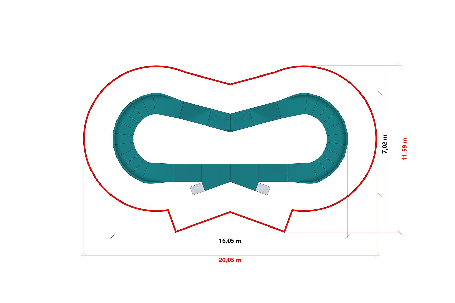 La piste est fabriquée à l'aide de la technologie acier-composite, qui associe une structure en acier robuste à une surface composite durable dotée de propriétés antidérapantes. Cette solution garantit une grande résistance aux conditions météorologiques, un besoin limité d'entretien et une longue durée de vie de l'installation.