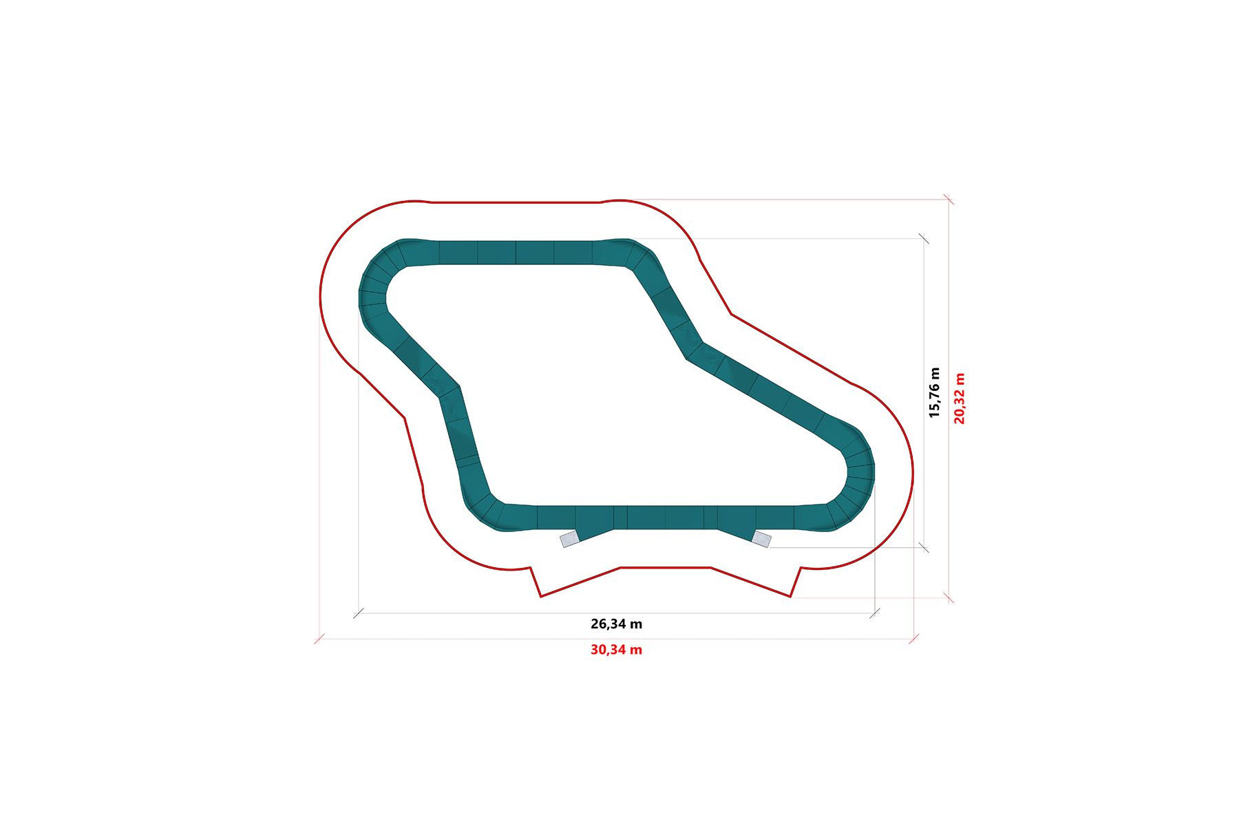 La VLTAVA TF025 Pumptrack, d'une longueur de 70,5 mètres, est une piste modulaire conçue pour les vélos, les planches à roulettes, les patins à roues alignées et les trottinettes. La géométrie de la piste permet une conduite souple et intuitive pour les débutants comme pour les utilisateurs plus expérimentés, ce qui fait de cette installation un espace de loisirs pour les enfants, les adolescents et les adultes.