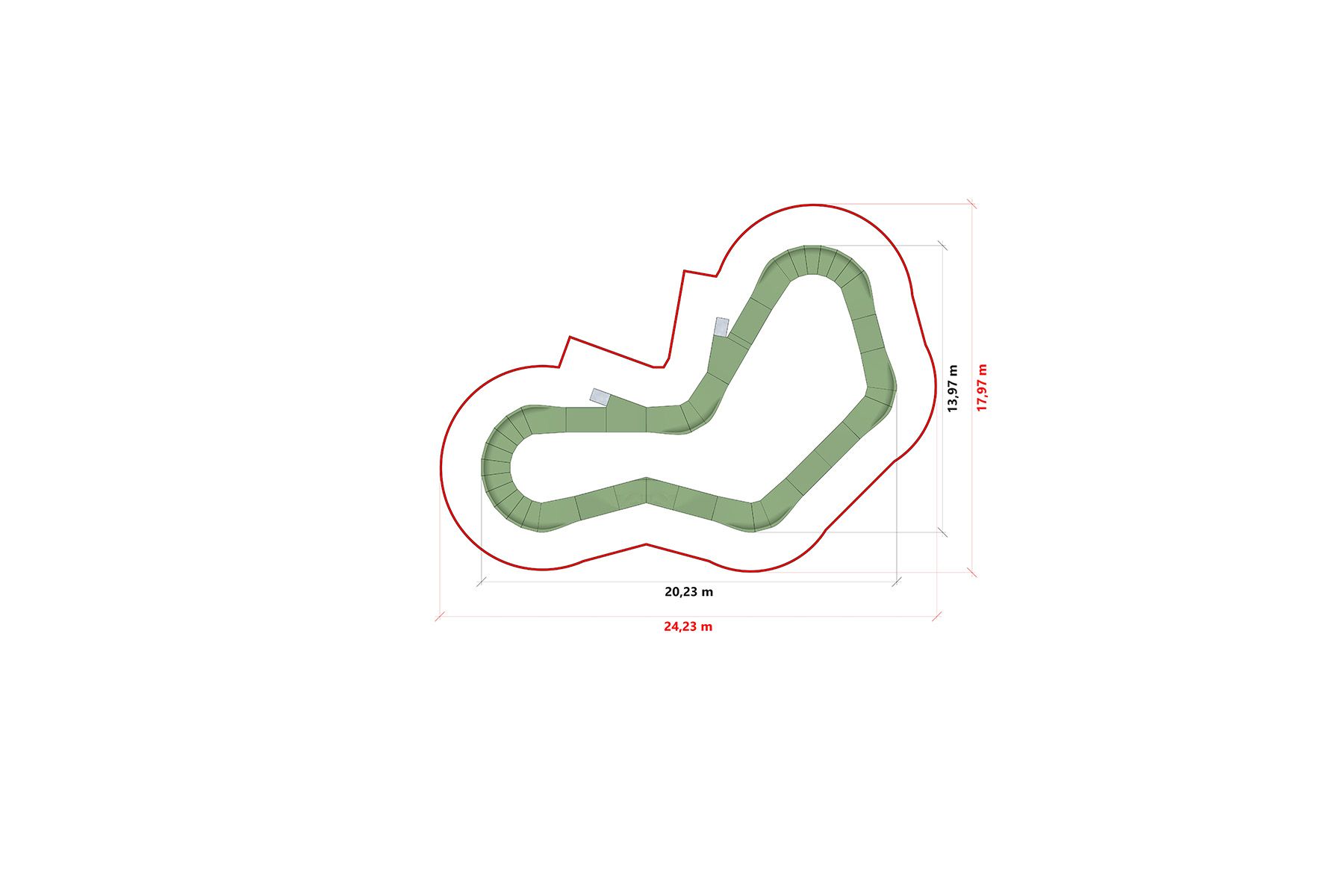 La piste est fabriquée selon la technologie du bois, basée sur une construction modulaire en contreplaqué avec une surface de roulement durable. Le système modulaire permet une installation rapide sur l'asphalte, le béton ou un sol convenablement préparé, ainsi que la possibilité d'une expansion future et d'une reconfiguration de la piste.