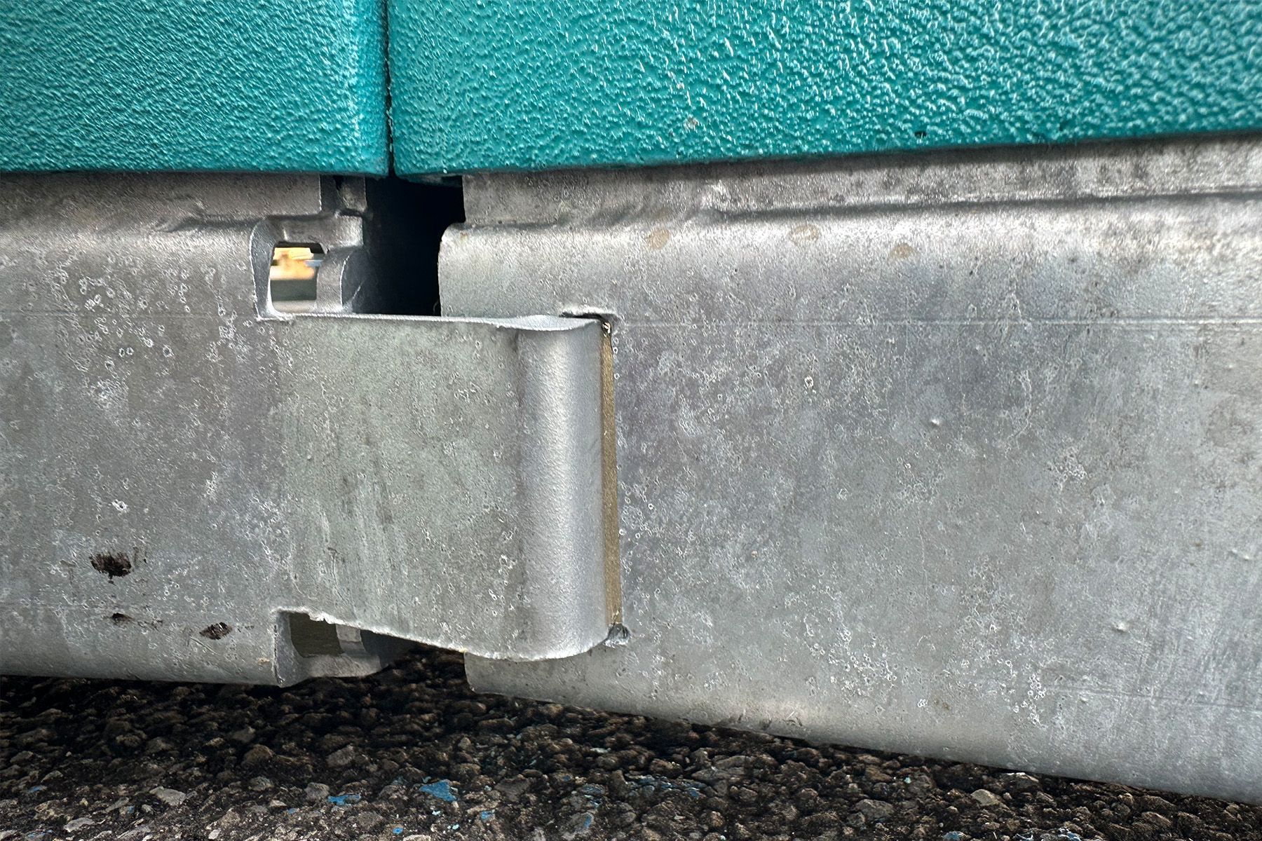 - La surface de roulement est en couleur marine RAL 5018 et les panneaux latéraux sont d'un gris esthétique RAL 7046.