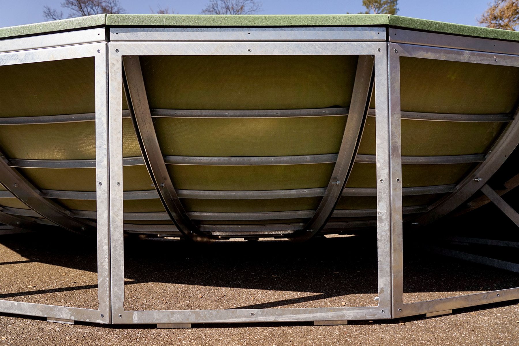 Couleur : vert pâle esthétique (RAL 6021) avec panneaux latéraux gris (RAL 7046).